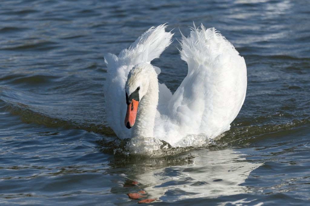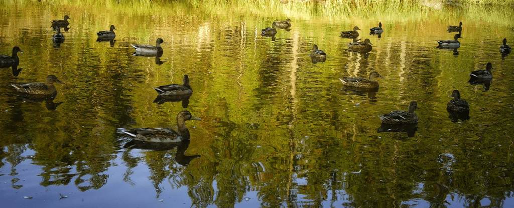 Det rasslade till när Akka stack iväg. Tydligen var det inte tillräckligt att ha foten på linan. Med ett stort plask hoppade hon i vattnet och de närmaste änderna lyfte tillsammans med kniporna. Så började hon simma efter de änder som fortfarande låg kvar. De retirerade när Akka närmade sig men började glida efter henne när hon ändrade kurs.