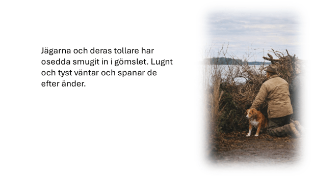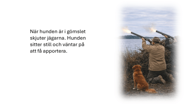 Det är klokt att låta en ung hund bekanta sig med gömslet och miljön några dagar innan jakt. Detta minskar behovet av utforskande vid skarpt läge.