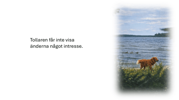 Nästa steg är att röja själva tollingsträckan – den strandremsa där hunden ska arbeta. Beroende på platsens utformning kan hunden visas från höger sida, vänster sida eller från båda sidor om gömslet. Den senare varianten är ofta att föredra, särskilt där fåglar kan ligga på båda sidor om udden.